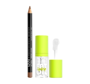 NYX Professional Makeup zestaw do makijażu ust konturówka 855 Nude Truffle 1 g + błyszczyk Fat Oil 01 My Main 4,8 ml
