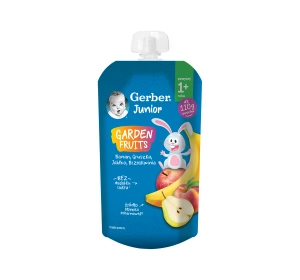 Gerber Junior Garden Fruits mus w tubce po 1 roku Banan Gruszka Jabłko Brzoskwinia 110g
